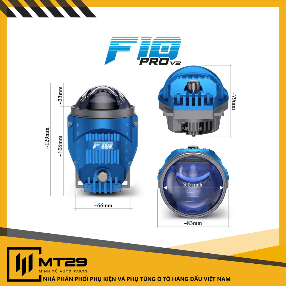 Thiết kế của X-Light F10 Pro V2 được hoàn thiện theo hướng tinh gọn và tối ưu để phù hợp với nhiều dòng xe phổ thông lẫn cao cấp. F10 Pro thế hệ thứ 2 thuộc phân khúc đèn bi gầm 3.0 inch tiêu chuẩn, giúp lắp đặt dễ dàng vào các hốc đèn sương mù ở nhiều dòng xe khác nhau trên thị trường.