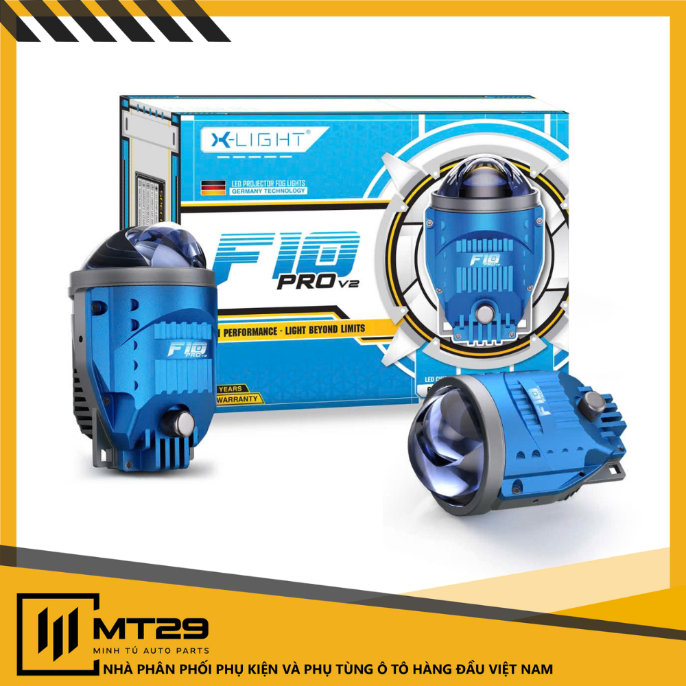 Đèn bi gầm X-Light F10 Pro V2 có khả năng chiếu sáng mạnh, rõ và rộng, giúp người lái có thể làm chủ tầm nhìn trong bất kỳ điều kiện di chuyển nào. Từ ánh sáng Cos bám đường ấn tượng đến ánh sáng Pha gom xa, sáng mạnh, chắc chắn trở thành một trong những lựa chọn hàng đầu cho phân khúc đèn gầm tăng sáng.